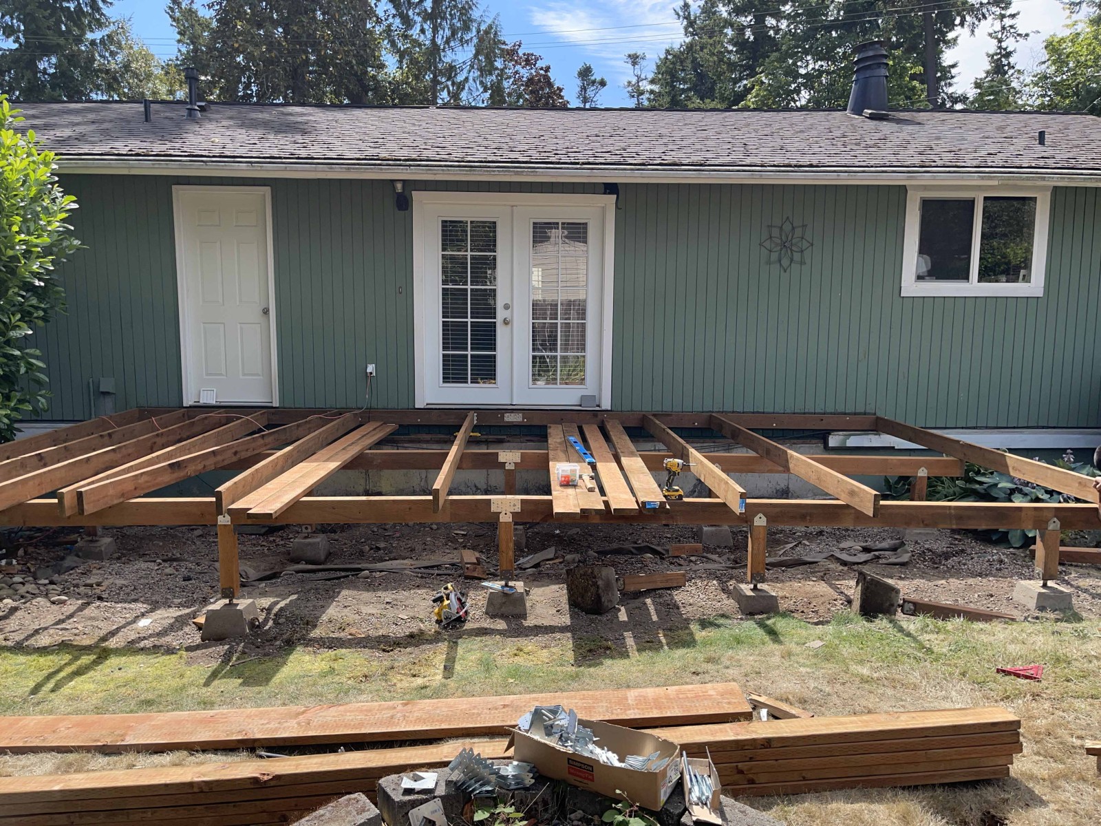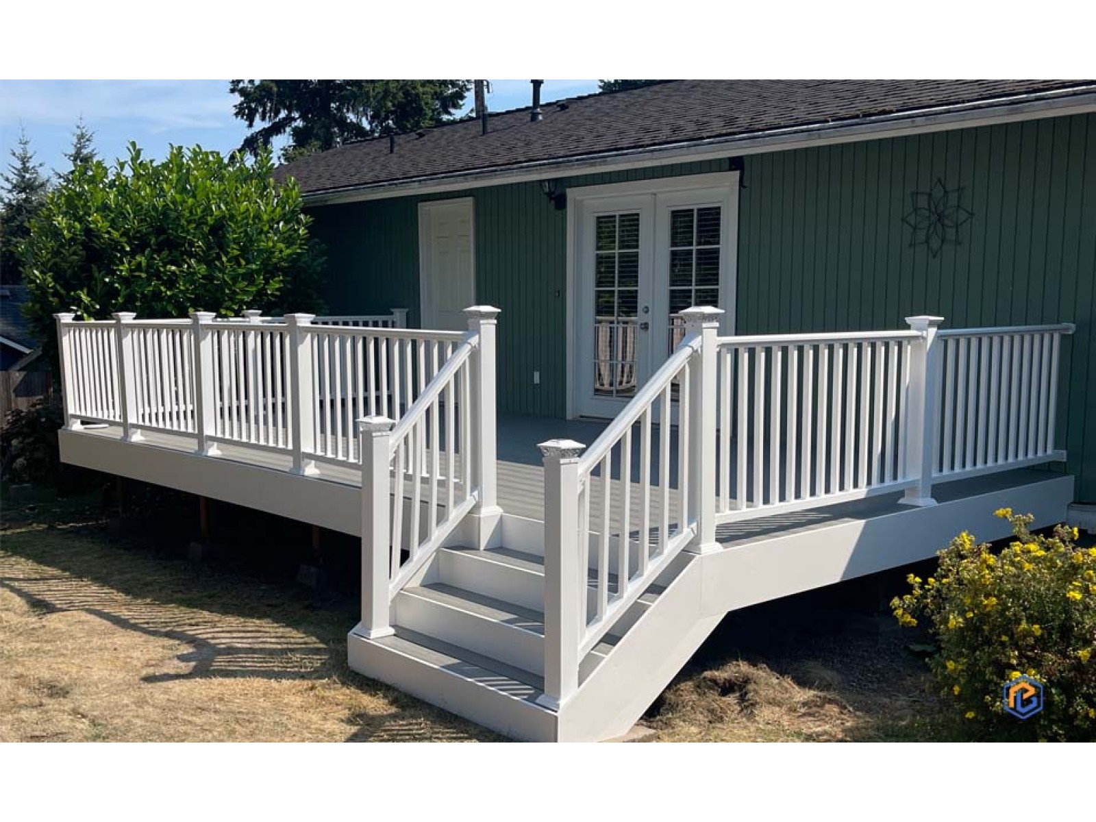 Brocha Construction removed the old, deteriorated wood deck and rebuilt it from the frame up using durable, low-maintenance Trex decking in Gray Salt color. The project included new handrails and a refreshed, sturdy layout designed for long-lasting outdoor use and a clean, modern look.